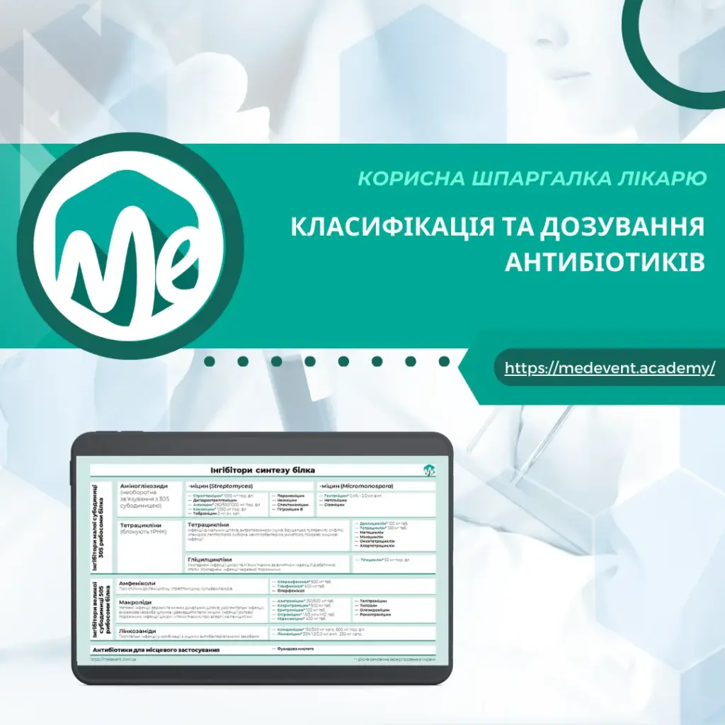 Дані розглядалися на вебінарах, конференціях та закритих курсах компанії MedEvent. Ми з командою зібрали їх у зручний PDF-формат саме для вас! Доєднуйтесь та користуйтесь! Адже матеріал уже допомагає вашим колегам, його використовують більше 1000 лікарів по всій Україні.