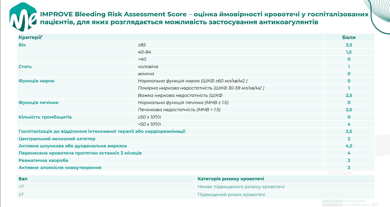 4. IMPROVE Bleeding Risk Assessment score – оцінка ймовірності кровотечі у госпіталізованих пацієнтів, для яких показаний прийом антикоагулянтів